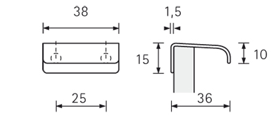 Fogantyú EMPOLI hossz 38 mm, furattávolság 25 mm. Felület nemesacél imitáció.