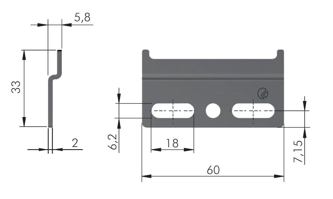 Függesztő lemez függesztett szerelvényekhez. Megállítja a felfüggesztett szerelvények oldalsó csúszását. méretek Sz. = 60mm, M= 33mm, Mély.= 5,8mm, lemez vastagsága 2mm. Anyag horganyzott lemez.