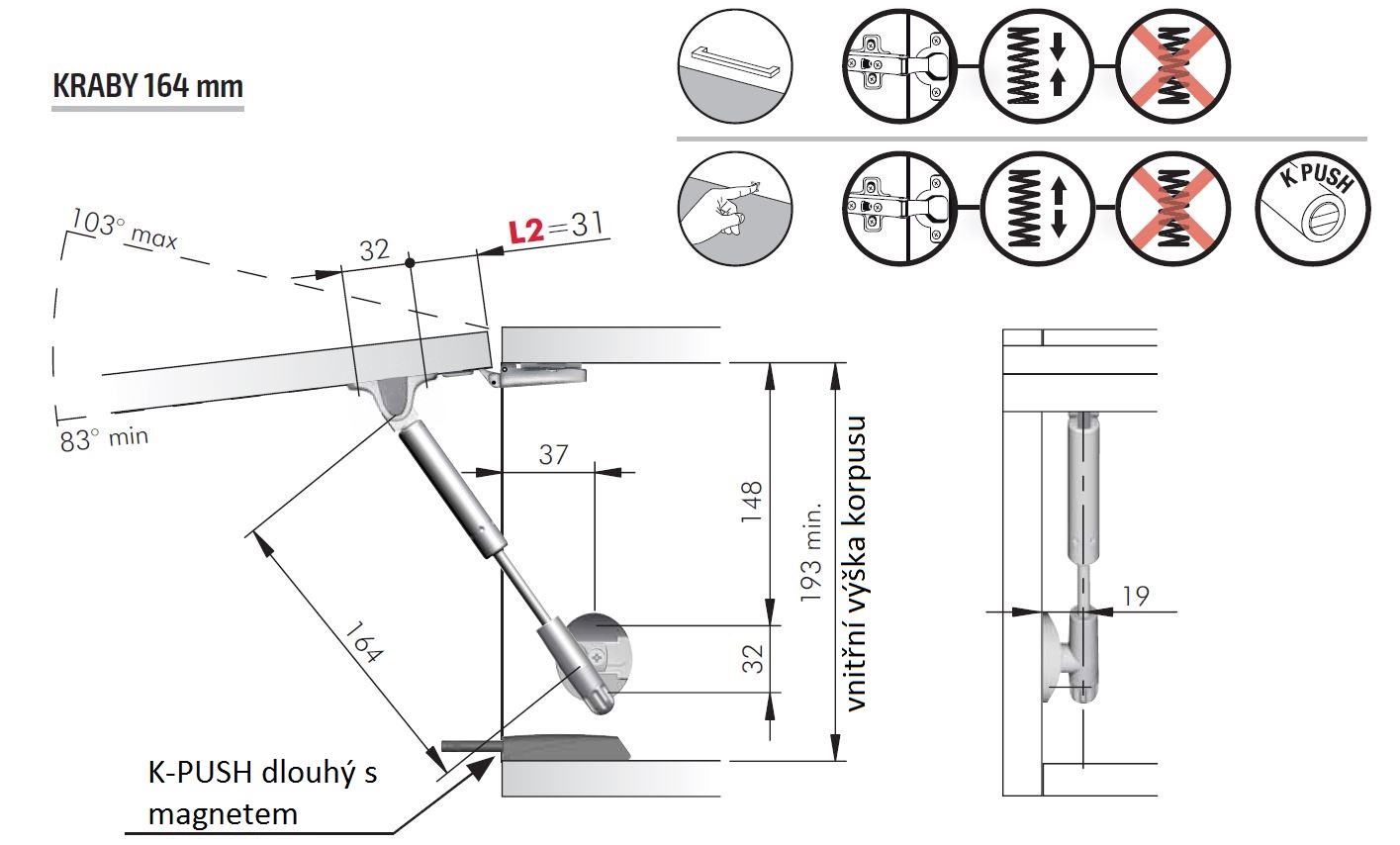 Több helyzetbe megálló gázrugó. Segít az ajtók nyitásánál, egyben tartja őket különböző helyzetekben. Abban az esetben, ha keskeny ALU keretet használ adaptert kell alkalmazni 15597 + önmetsző csavar15598 2x a 15599 - 1x.
