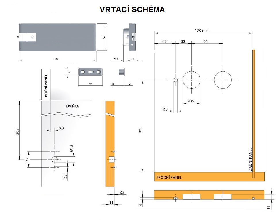 Lenyilló vasalat alsó szekrényekre. Szín sötét szürke (T-met). Az ajtó lassú nyitása és csillapítás a zárásnál. Kombinálható klasszikus pántokkal vagy KIMANA pánttal (kód 224888).