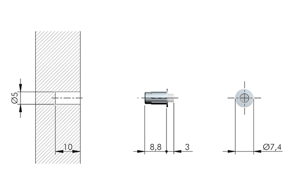 Befúrható csillapító szilikon réteggel a jó min5ségű csillapításra. Nyíláshoz: 5 mm, mélyedés 11mm. Külső méret: 10mm, átnyúlás 3 mm.