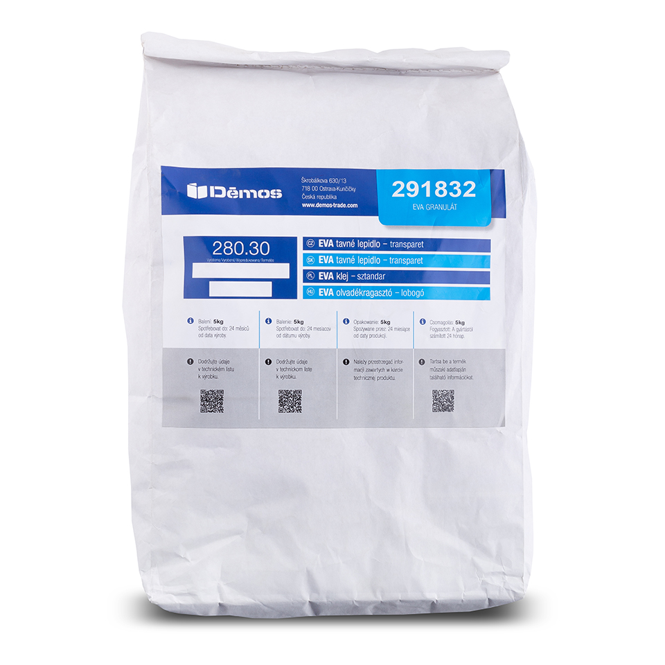Forró olvadó ragasztó, átlátszó, granulátum -5 kg, feldolgozási hőmérséklet 180-200 ° C, lágyulási terület 90 ° C, előtolási sebesség 8-40 m / perc