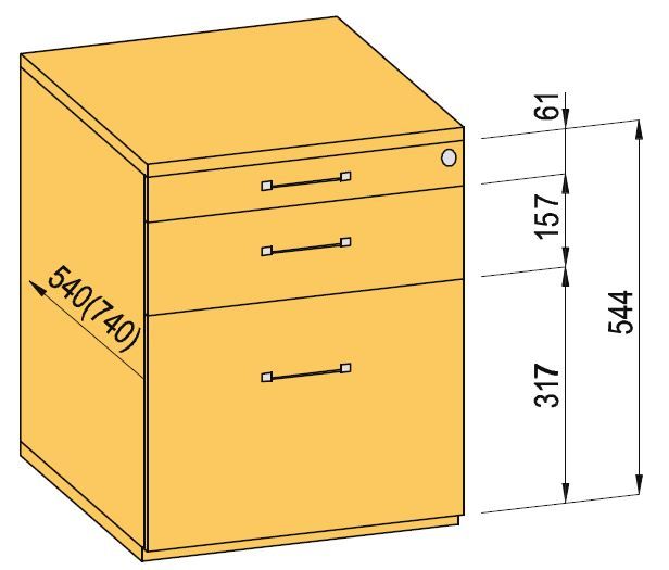 K-BBP kontejner 540mm typ 5/V 7 zásuvka plast celovýsuv dotah