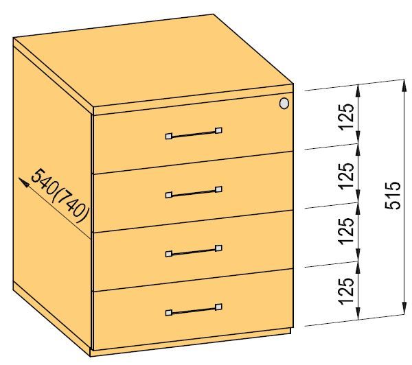 K-BBP kontejner 740mm typ 7 zásuvka plast celovýsuv tlumený dotah
