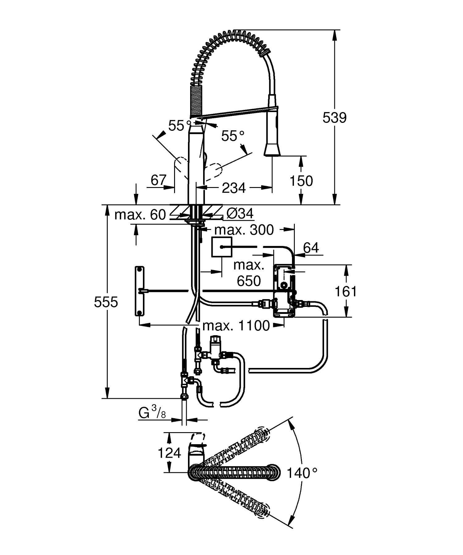 GROHE 31379DC0 K7 mosogatóhoz karos csaptelep professzionális zuhannyal, SuperSt | 410430 | 1 db |