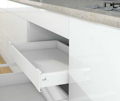 ArciTech vasalat belső fiókokra fehér színben, a fióksín mélysége 500mm, oldalfal magassága 94mm, a fióksín teherbírása 40kg, csillapítás SiSy. A szett összetétele: 1 pár oldalfal, 2 db frontrögzítő (előlappal kell kiegészíteni megr. sz. 301001, Magasság 70mm, hossz 2000mm, rövidítés = a korpusz belső szélessége-2xEB-62), 2 db Hettich takarósapka, 2 db hátlap tartó. A fogantyú nélküli nyitáshoz P2OS a megfelelő P2O modullal kell kiegészíteni, abban az esetben, ha a fiók 600 mm-nél szélesebb, szinkronizációs rudat kell hozzáadni (318279), rövidítés = a korpusz belső szélessége-2xEB-207.