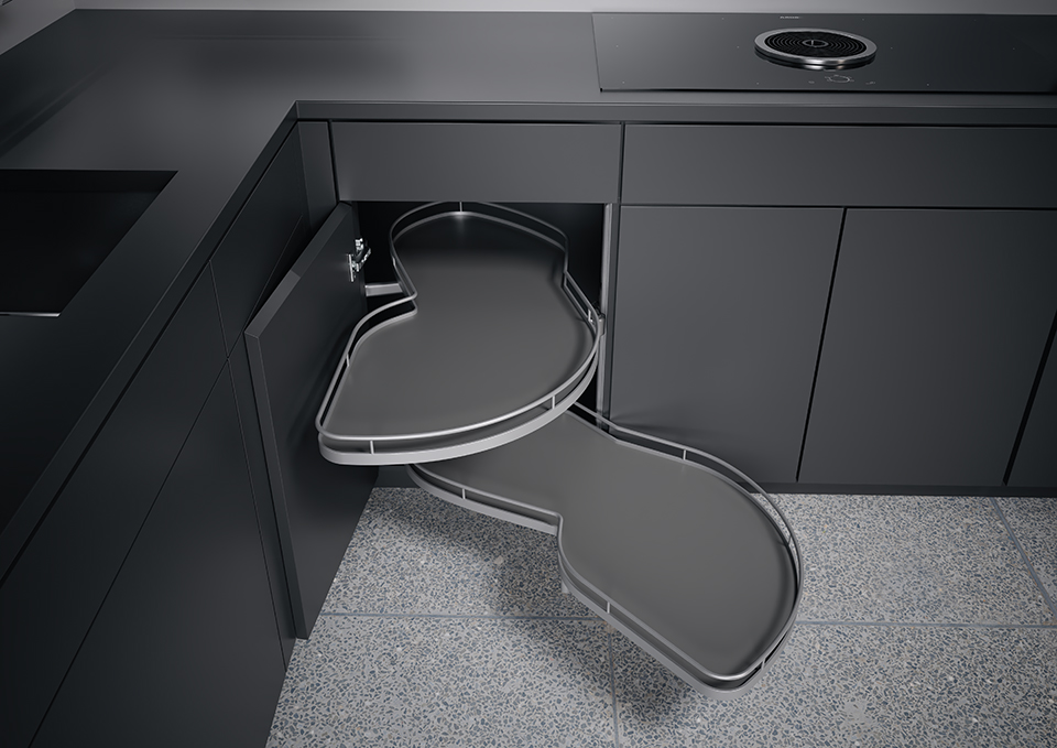 A polcok speciálisan kialakított geometriájának köszönhetően akár 70%-kal növeli a tényleges tárolási területet. Egyértelmű előny a hasonló kihúzható szekrényekkel szemben. Ha a LeMans II-t az opcionálisan rendelhető csillapító mechanizmussal szerelik fel, a polcok mozgása szinte zajtalan. Ez az optimális kényelem bármikor gyorsan és egyszerűen utólag is felszerelhető.
