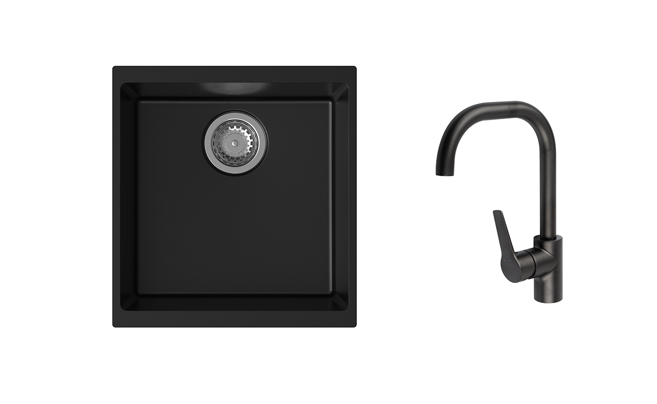K-StrongSinks S3 mosogató szett Hron 430x460mm fekete + Garonne csaptelep fekete