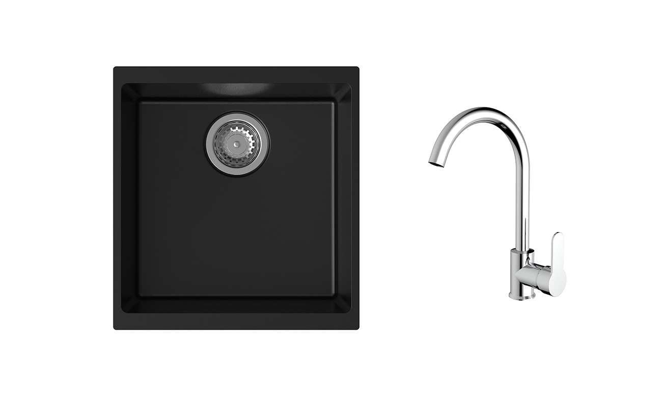 K-StrongSinks S3 mosogató szett Hron 430x460mm fekete + Seina csaptelep króm