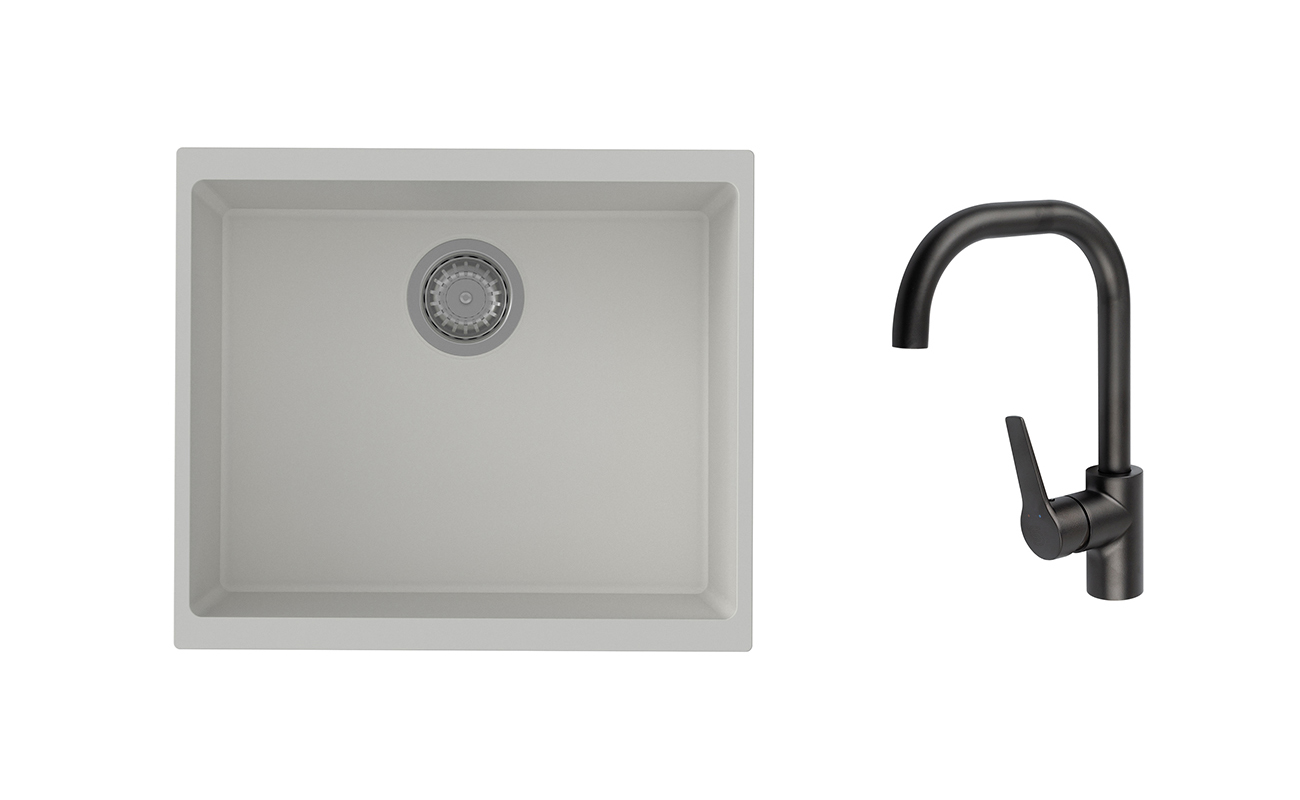 K-StrongSinks S3 mosogató szett Hron 530x460mm fehér + Garonne csaptelep fekete