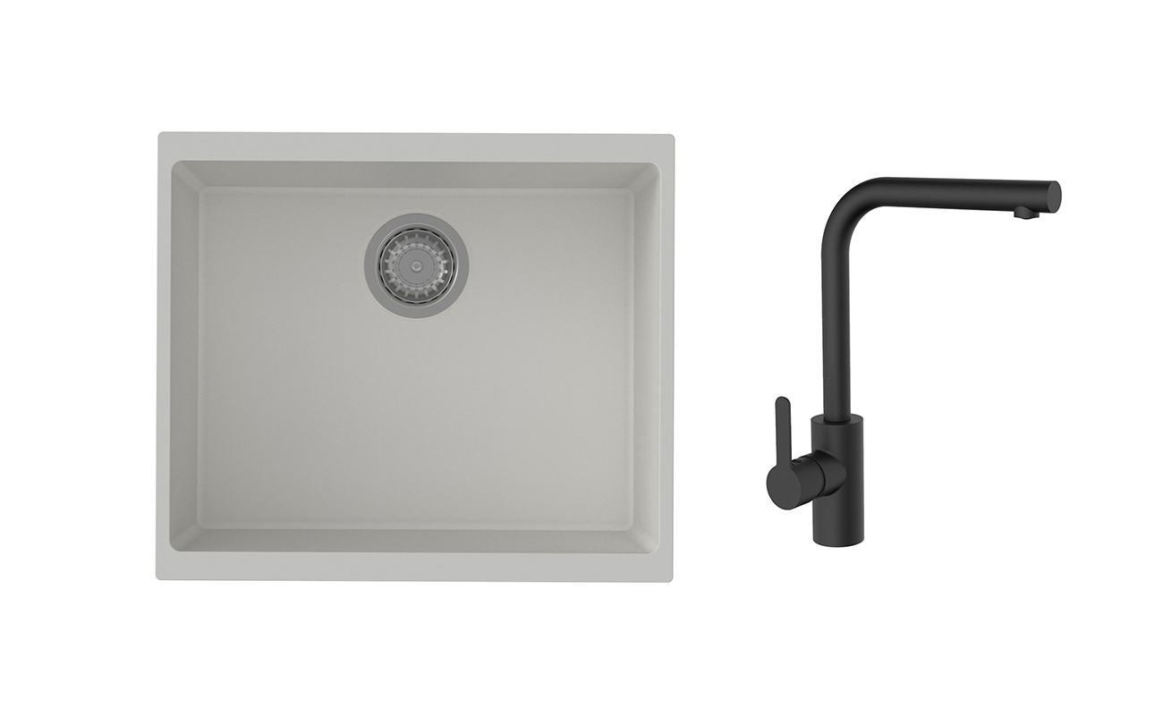 K-StrongSinks S3 mosogató szett Hron 530x460mm fehér + Ipoly csaptelep fekete