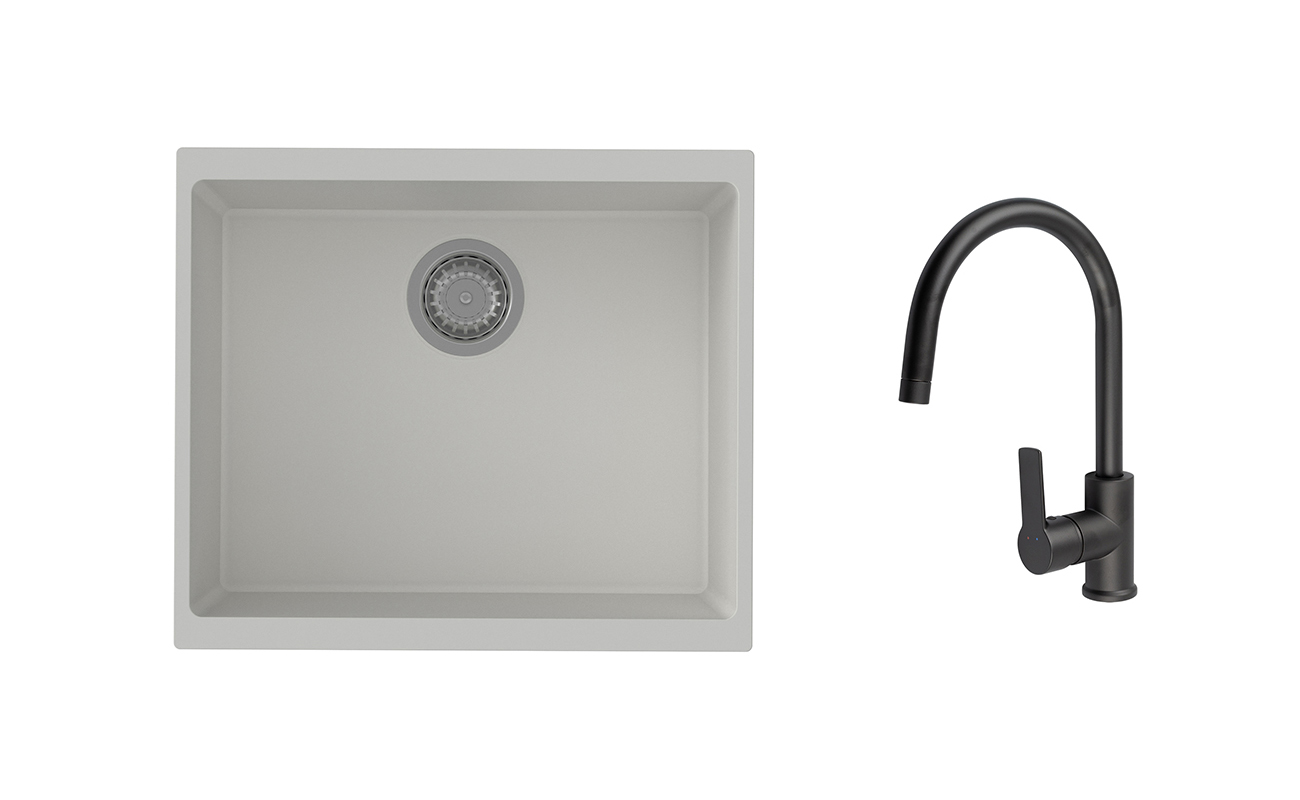 K-StrongSinks S3 mosogató szett Hron 530x460mm fehér + Loira csaptelep fekete
