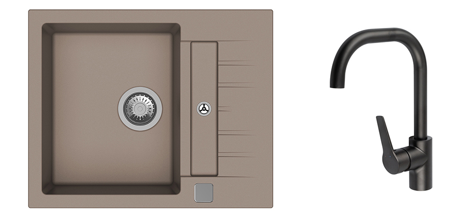 K-StrongSinks S3 mosogató szett Vardar 615 bézs + Garonne csaptelep fekete