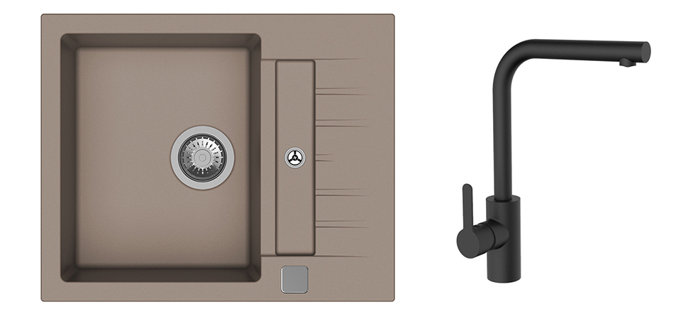 K-StrongSinks S3 mosogató szett Vardar 615 bézs + Ipoly csaptelep fekete