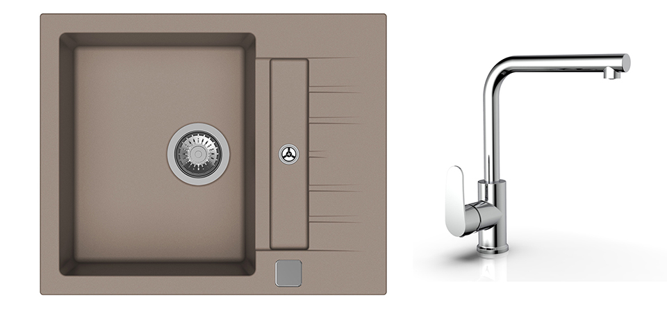 K-StrongSinks S3 mosogató szett Vardar 615 bézs + Stréva csaptelep króm