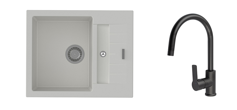 K-StrongSinks S3 mosogató szett Vardar 615 fehér + Loira csaptelep fekete