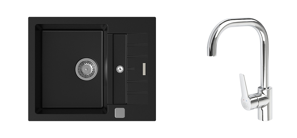 K-StrongSinks S3 mosogató szett Vardar 615 fekete + Garonne csaptelep króm