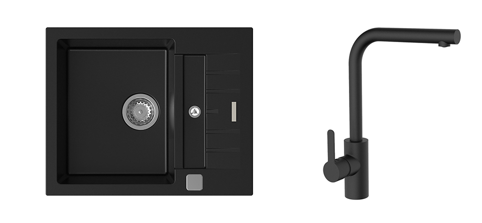 K-StrongSinks S3 mosogató szett Vardar 615 fekete + Ipoly csaptelep fekete