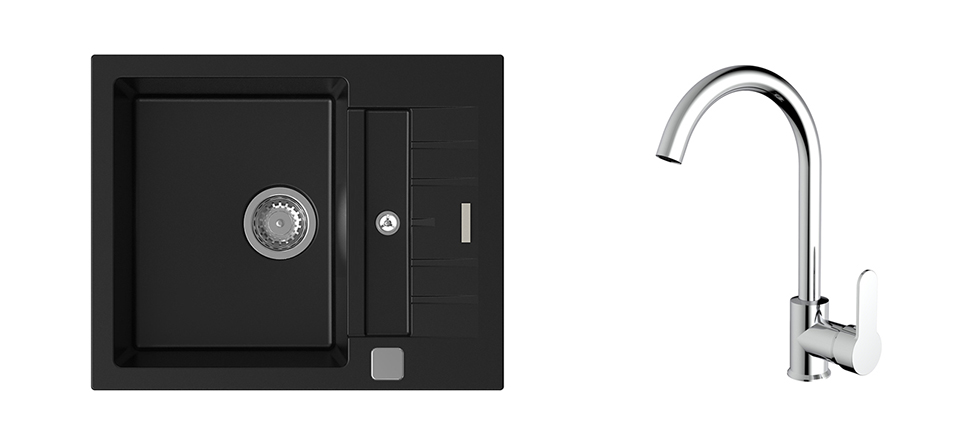 K-StrongSinks S3 mosogató szett Vardar 615 fekete + Seina csaptelep króm