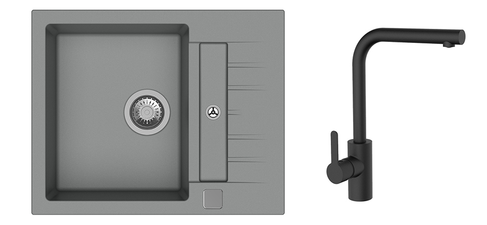 K-StrongSinks S3 mosogató szett Vardar 615 szürke + Ipoly csaptelep fekete