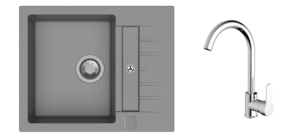 K-StrongSinks S3 mosogató szett Vardar 615 szürke + Seina csaptelep króm