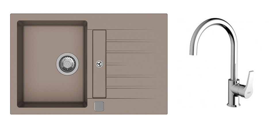 K-StrongSinks S3 mosogató szett Vardar 780 bézs + Rhona csaptelep króm