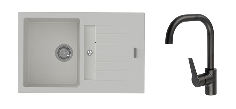 K-StrongSinks S3 mosogató szett Vardar 780 fehér + Garonne csaptelep fekete