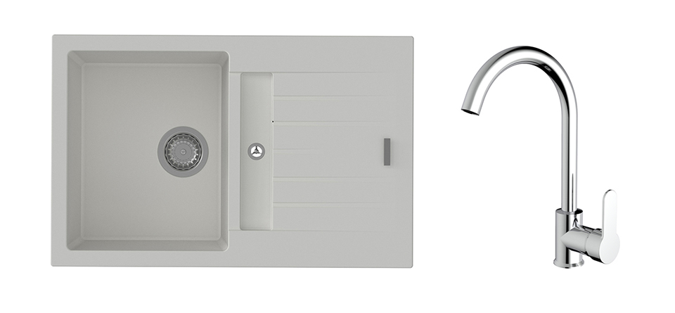 K-StrongSinks S3 mosogató szett Vardar 780 fehér + Seina csaptelep króm