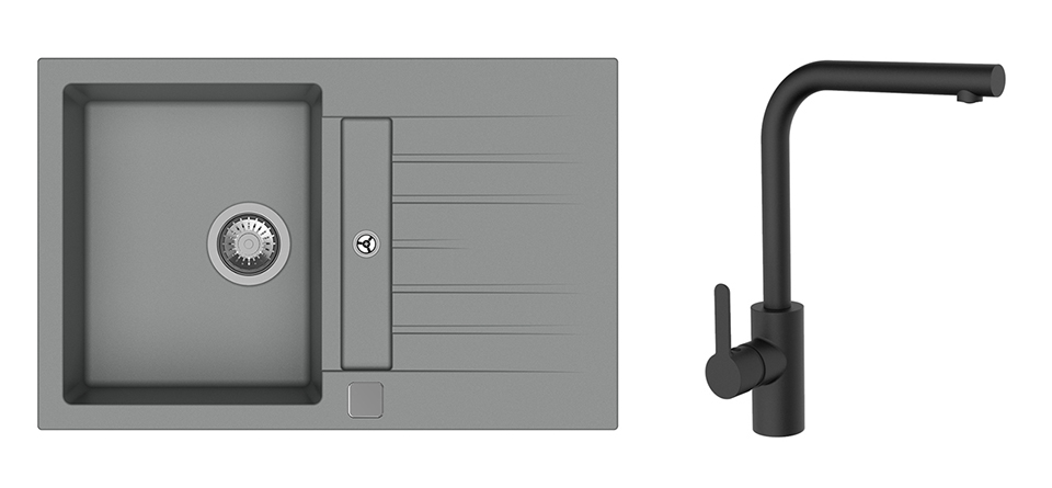 K-StrongSinks S3 mosogató szett Vardar 780 szürke + Ipoly csaptelep fekete
