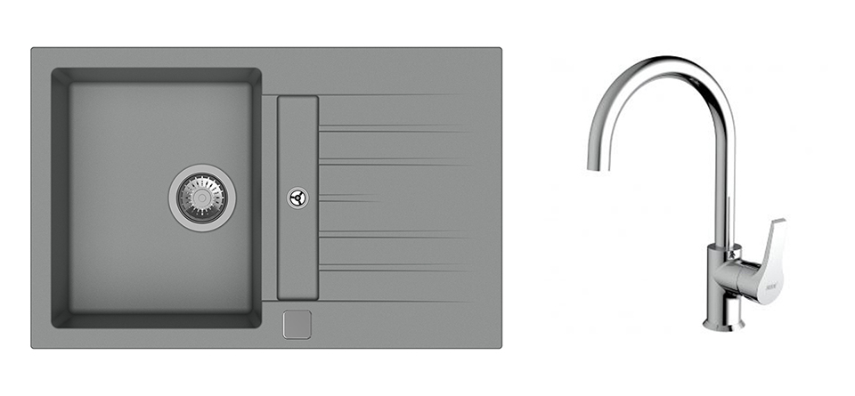 K-StrongSinks S3 mosogató szett Vardar 780 szürke + Rhona csaptelep króm