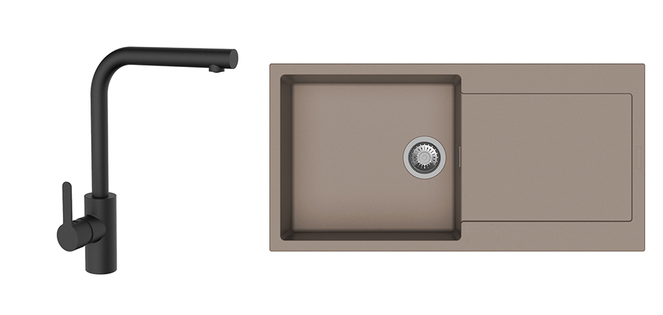 K-StrongSinks S3 mosogató szett Zala 1000, barna + Ipoly csaptelep, fekete