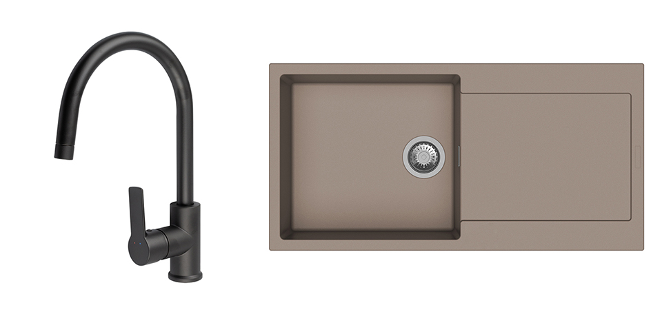 K-StrongSinks S3 mosogató szett Zala 1000, barna + Loira csaptelep, fekete