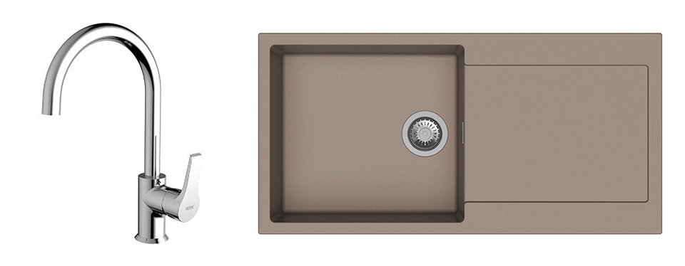 K-StrongSinks S3 mosogató szett Zala 1000, barna + Rhona csaptelep, króm