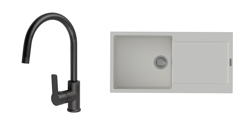 K-StrongSinks S3 mosogató szett Zala 1000, fehér + Loira csaptelep, fekete