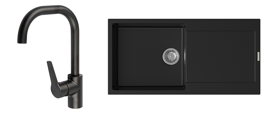 K-StrongSinks S3 mosogató szett Zala 1000, fekete + Garonne csaptelep, fekete