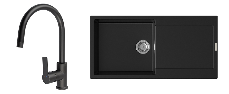 K-StrongSinks S3 mosogató szett Zala 1000, fekete + Loira csaptelep, fekete