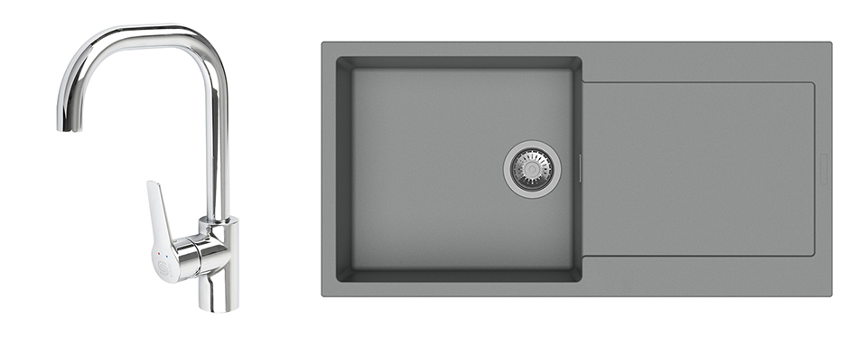 K-StrongSinks S3 mosogató szett Zala 1000, szürke + Garonne csaptelep, króm