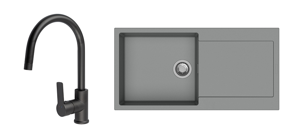K-StrongSinks S3 mosogató szett Zala 1000, szürke + Loira csaptelep, fekete