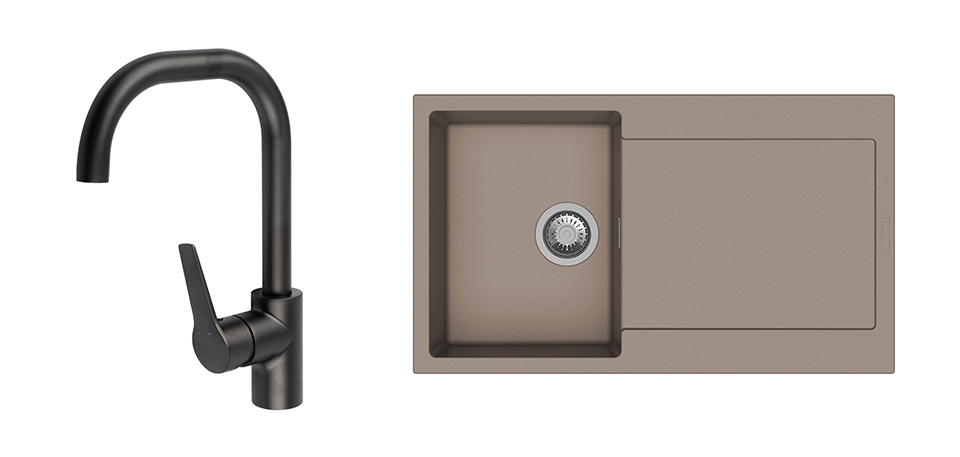 K-StrongSinks S3 mosogató szett Zala 860, barna + Garonne csaptelep, fekete