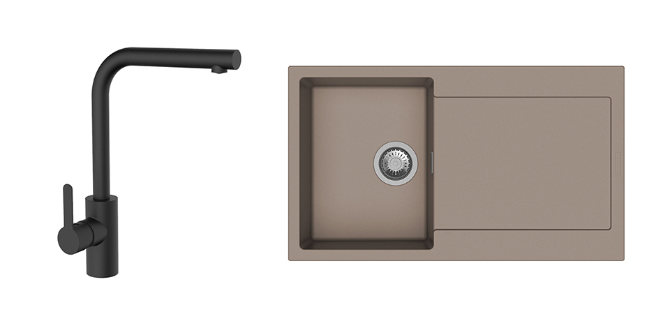 K-StrongSinks S3 mosogató szett Zala 860, barna + Ipoly csaptelep, fekete
