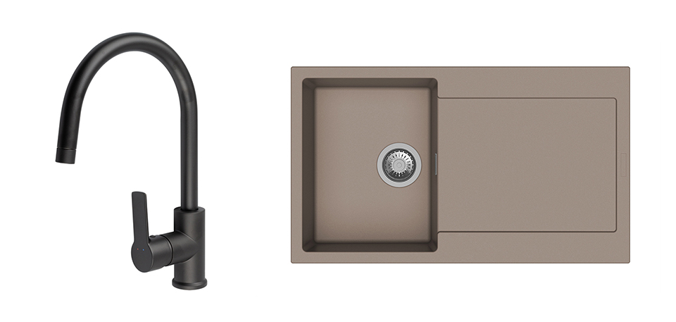 K-StrongSinks S3 mosogató szett Zala 860, barna + Loira csaptelep, fekete