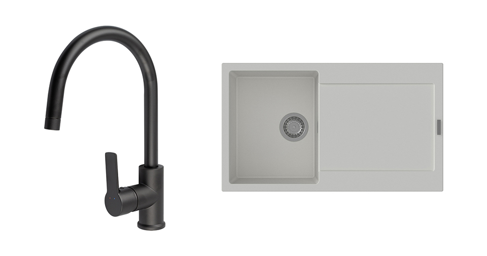 K-StrongSinks S3 mosogató szett Zala 860, fehér + Loira csaptelep, fekete