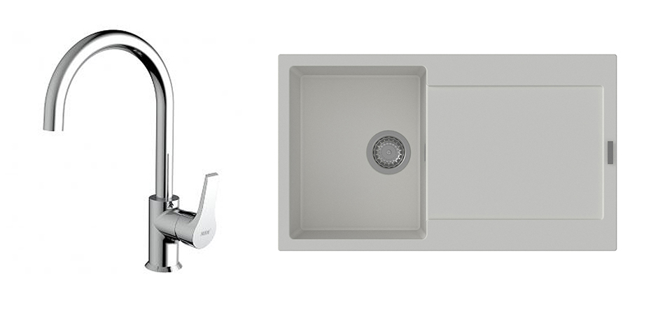K-StrongSinks S3 mosogató szett Zala 860, fehér + Rhona csaptelep, króm