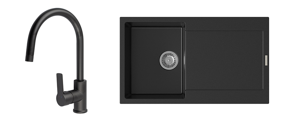 K-StrongSinks S3 mosogató szett Zala 860, fekete + Loira csaptelep, fekete