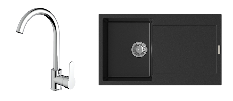 K-StrongSinks S3 mosogató szett Zala 860, fekete + Seina csaptelep, króm