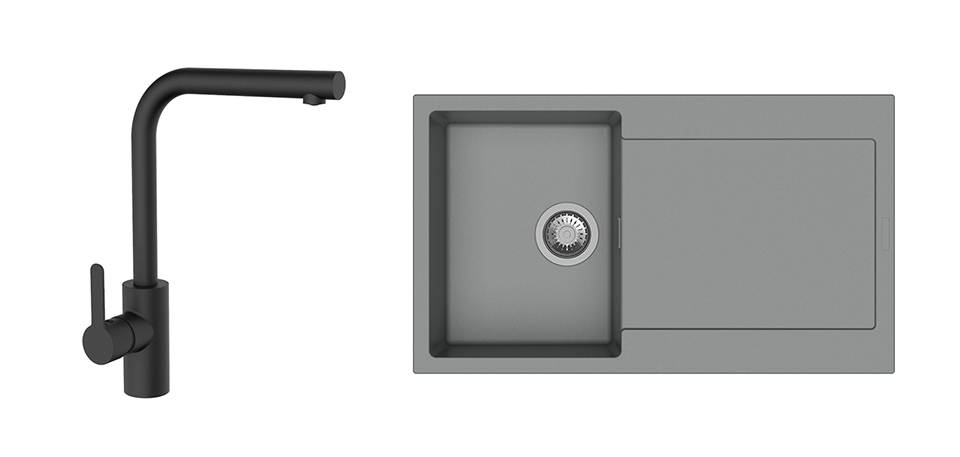 K-StrongSinks S3 mosogató szett Zala 860, szürke + Ipoly csaptelep, fekete