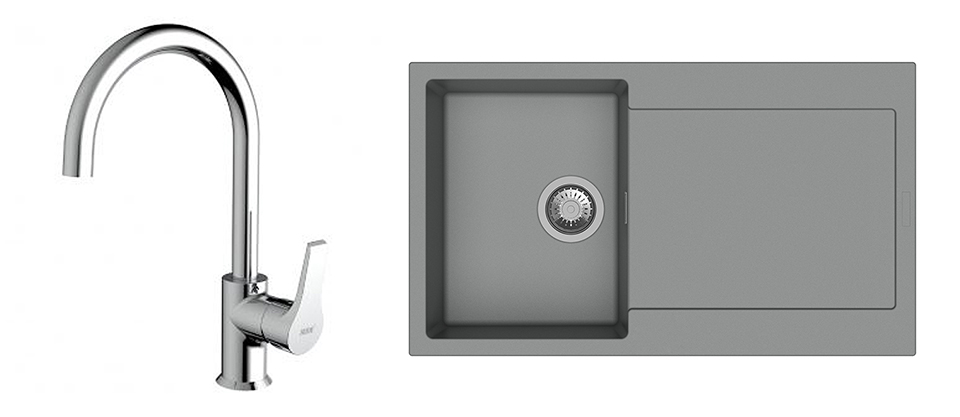 K-StrongSinks S3 mosogató szett Zala 860, szürke + Rhona csaptelep, króm