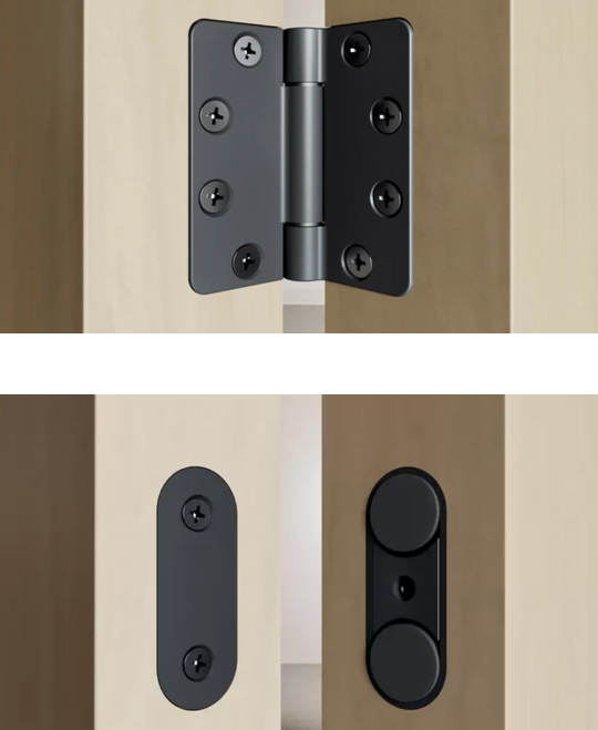 Fitting set for the first biplane. It contains two magnetic catches and three inter-door hinges. Version without lower guide. For door height max. 2400mm, load capacity 80kg/1 wing. In the case of four doors - 40kg/1 wing, six doors - 25 - 30kg/1 wing. Material thickness 35 - 45mm. Color black (powder coated).