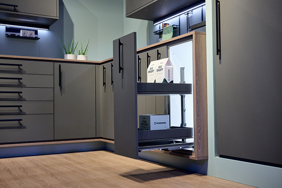 Teljes kihúzású vázszerkezet és Dispensa Junior III kiegészítők. 500 mm széles szekrényhez.