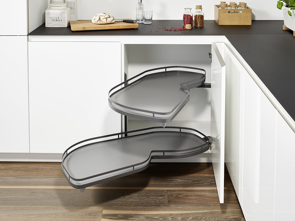 Arena STYLE polc szett (lapos drót) antracit megoldás alsó sarokszekrénybe (úgyn. vak sarok). Az alj Anti-slip csúszásgátló felülettel. A korpusz mérete: 1000mm. A korpusz belső mérete: szélesség: 960, mélység 500, magasság: 600-750mm esetleg 720-900mm. Az ajtó mérete: 461-468mm. Szerelő rúd + rögzítés oldalra - 160132 (600-750mm). külső csillapító a jobbos változatra - 315039. A polc teherbírása: 25kg.